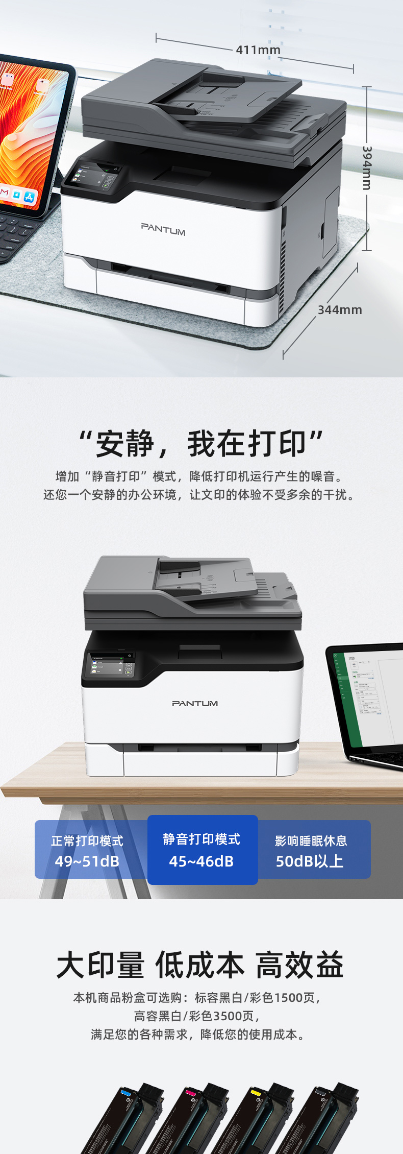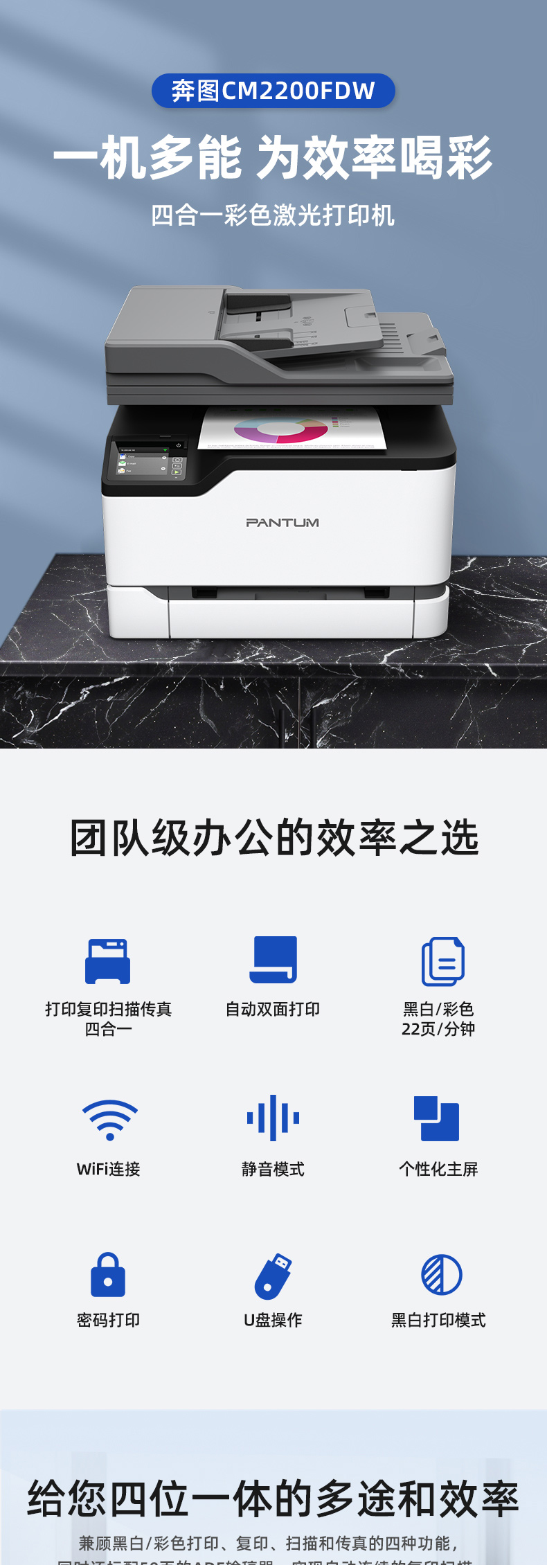 奔图(PANTUM)CM2200FDW 彩色激光无线多功能一体机 自动双面打印/复印/扫描 自营