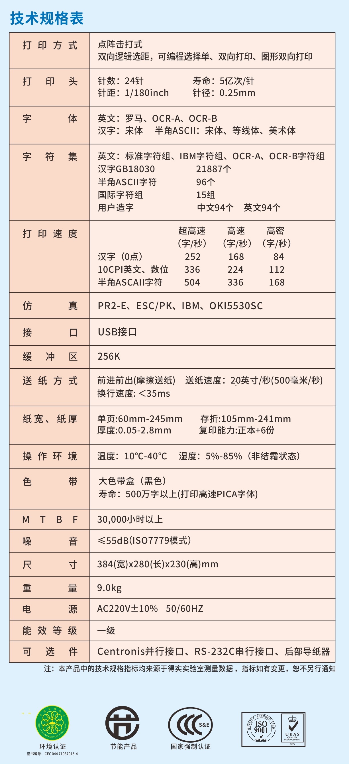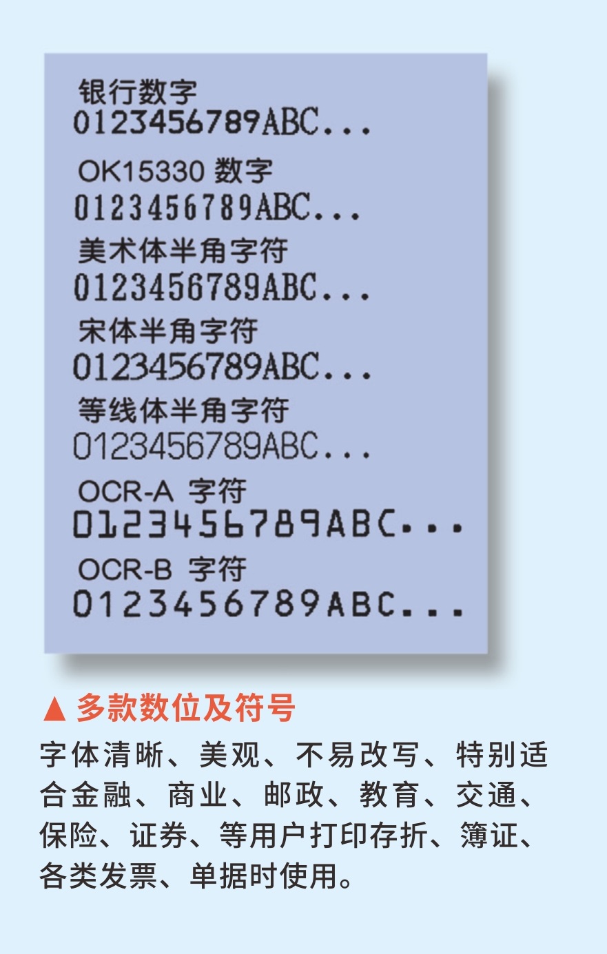 DS-200外观时尚精美、平均无故障时间长达30000小时,配备GB-18030中文大字库,完全兼容PR2-E、OKI、IBM、ESC/PK等仿真,是银行、财税、商业等行业的理想选择。