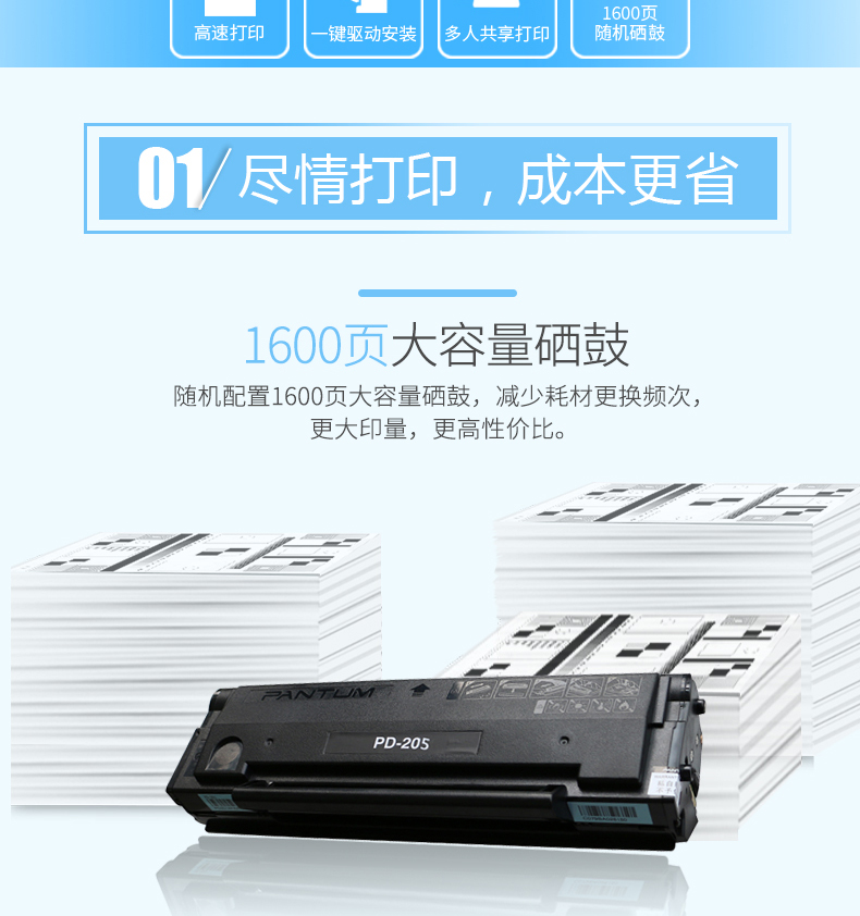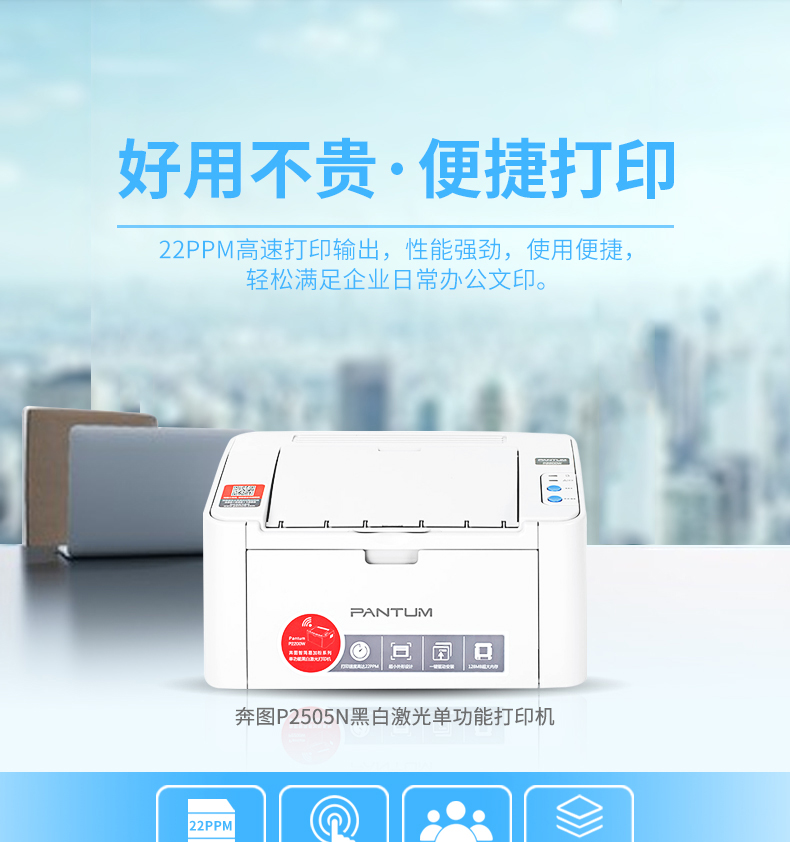 奔图(PANTUM) P2505N黑白激光打印机(A4打印 USB打印) 自营