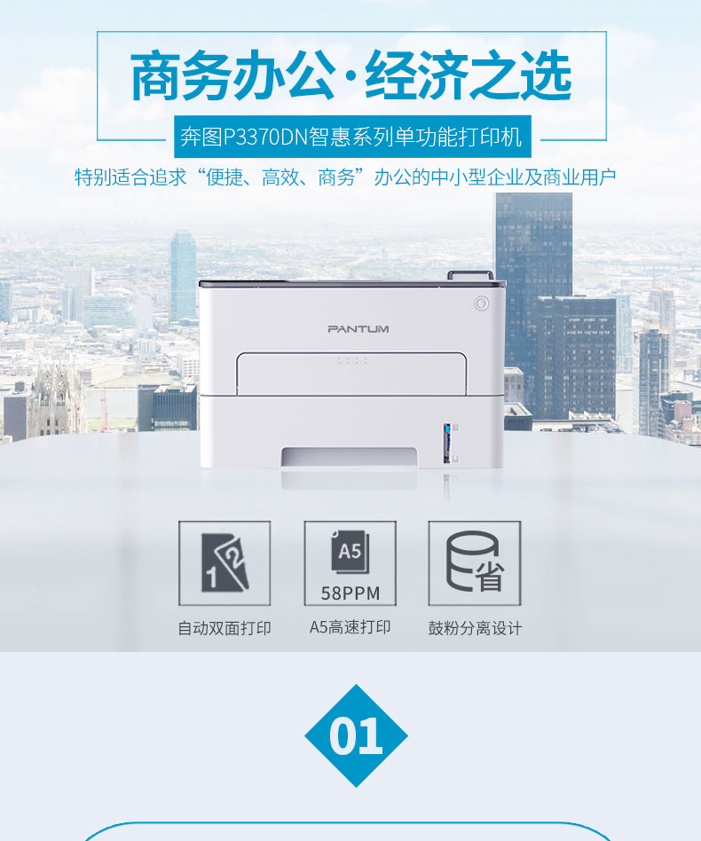 奔图(PANTUM)P3370DN黑白激光打印机(自动双面 A4打印 USB打印) 自营