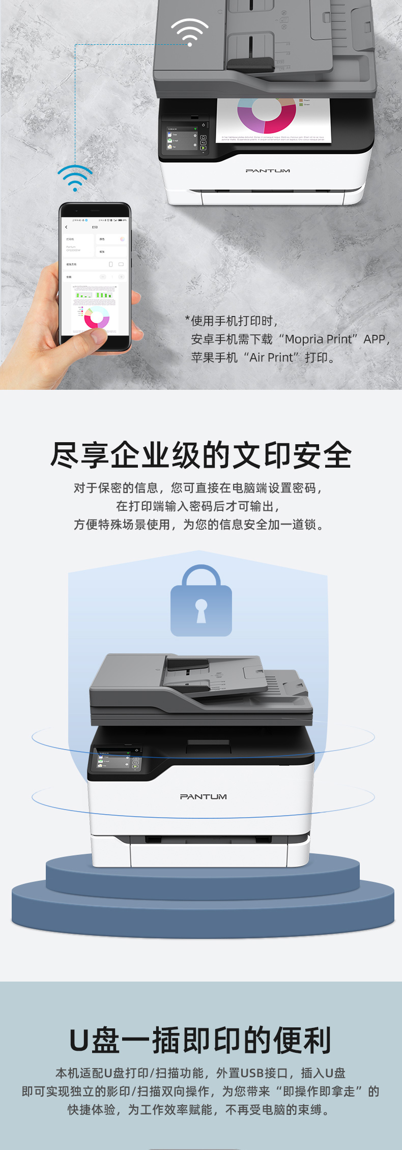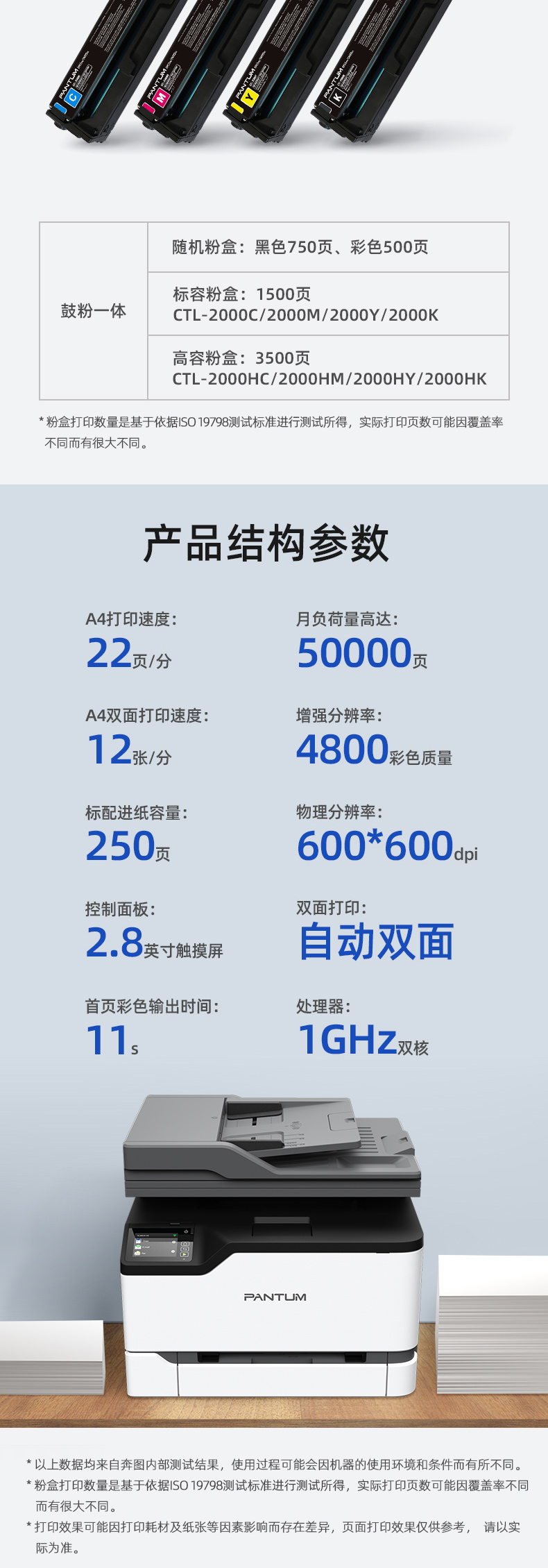 奔图(PANTUM)CM2200FDW 彩色激光无线多功能一体机 自动双面打印/复印/扫描 自营