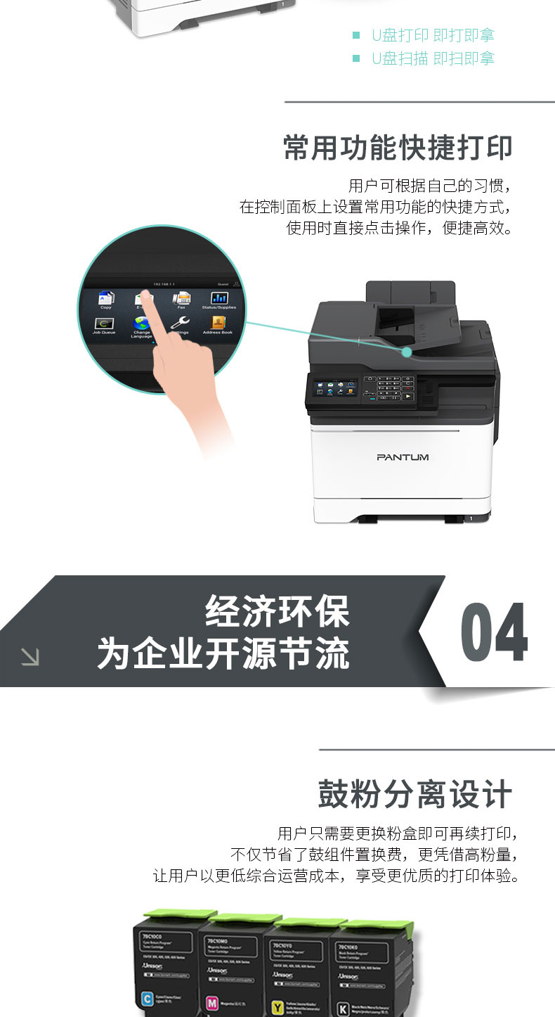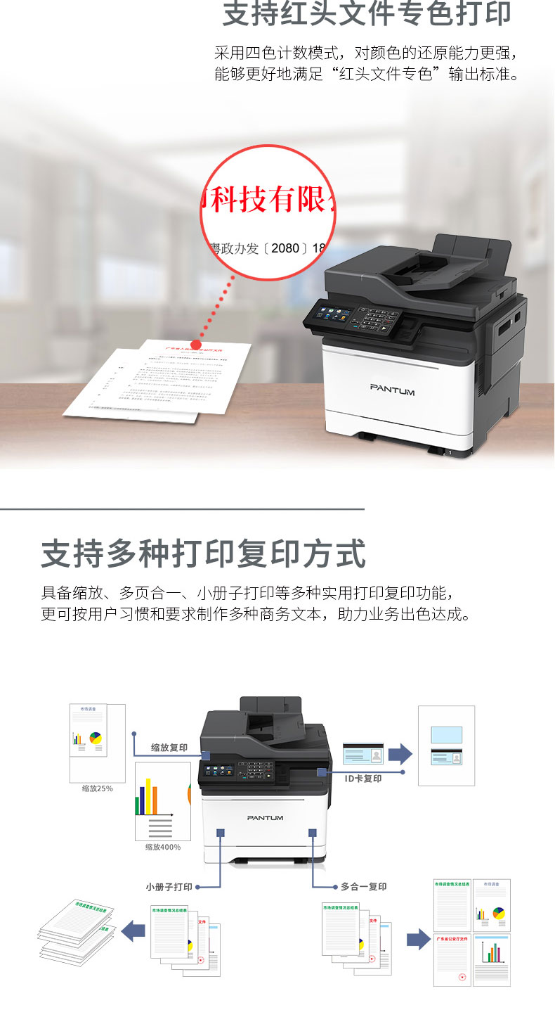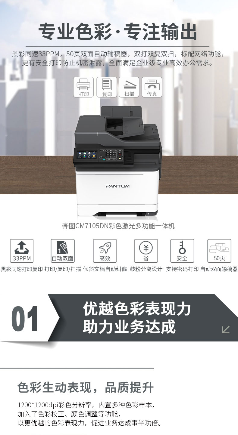 奔图(PANTUM) CM7105DN 彩色激光多功能一体机 (4.3英寸彩色触摸屏 打印 复印 扫描 传真) 自营