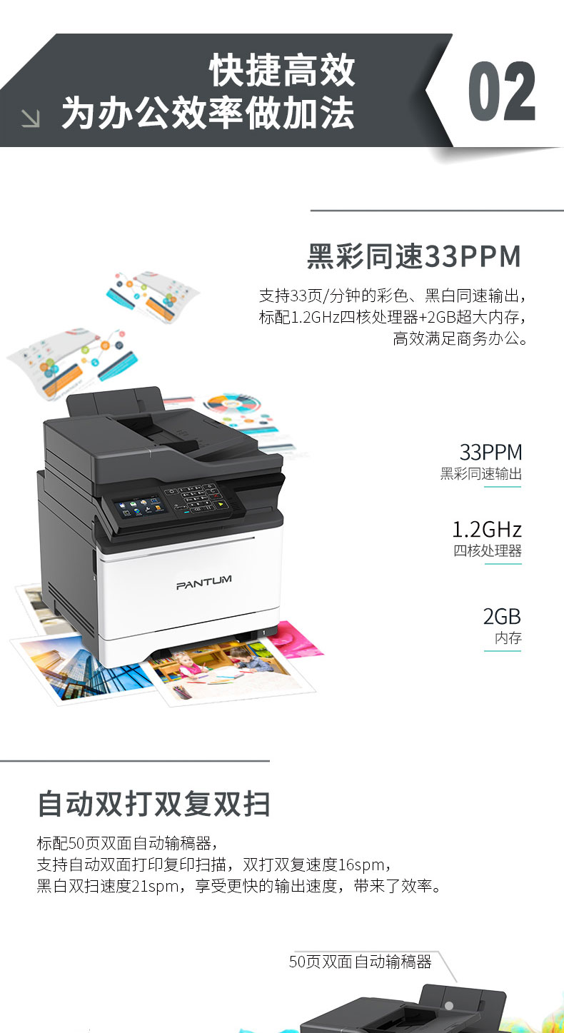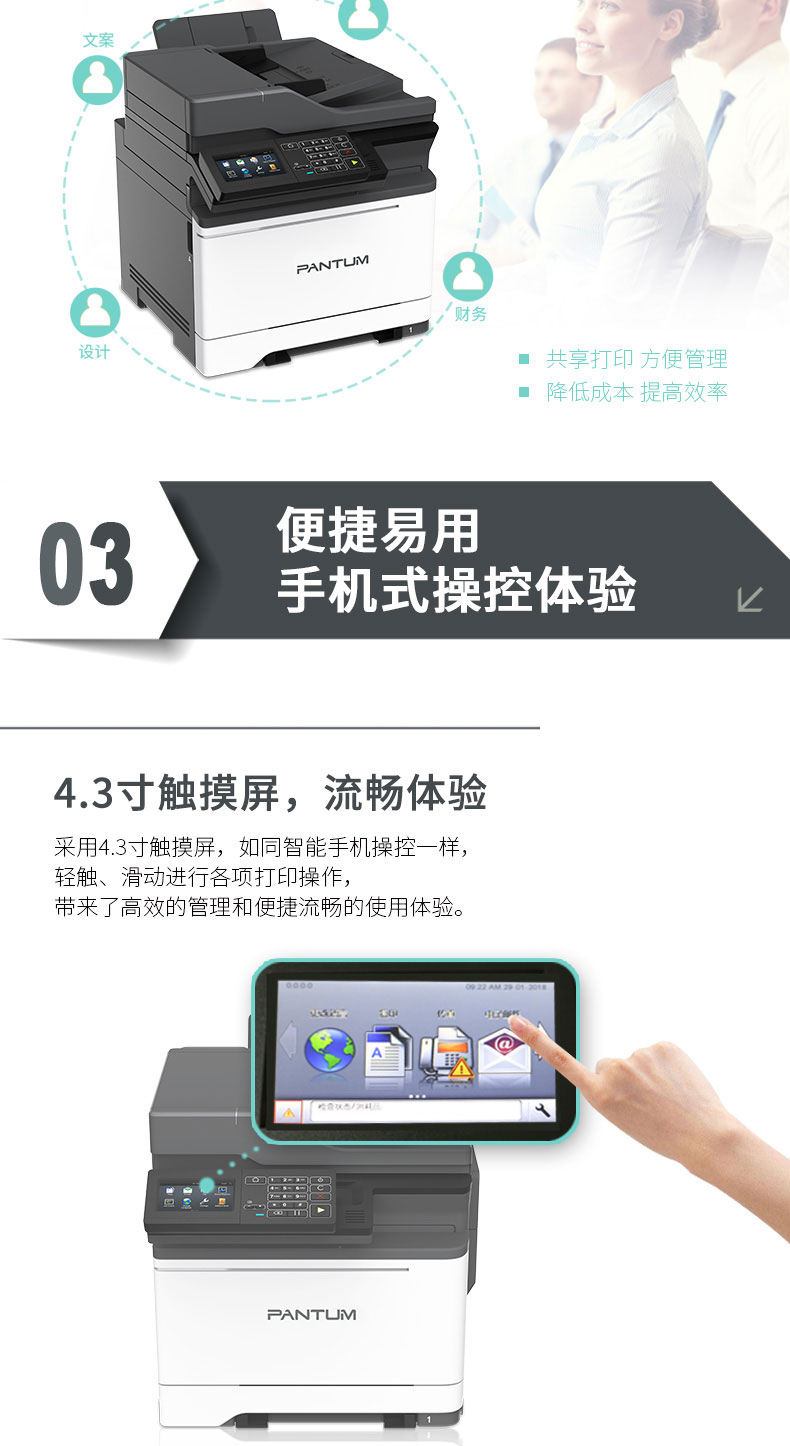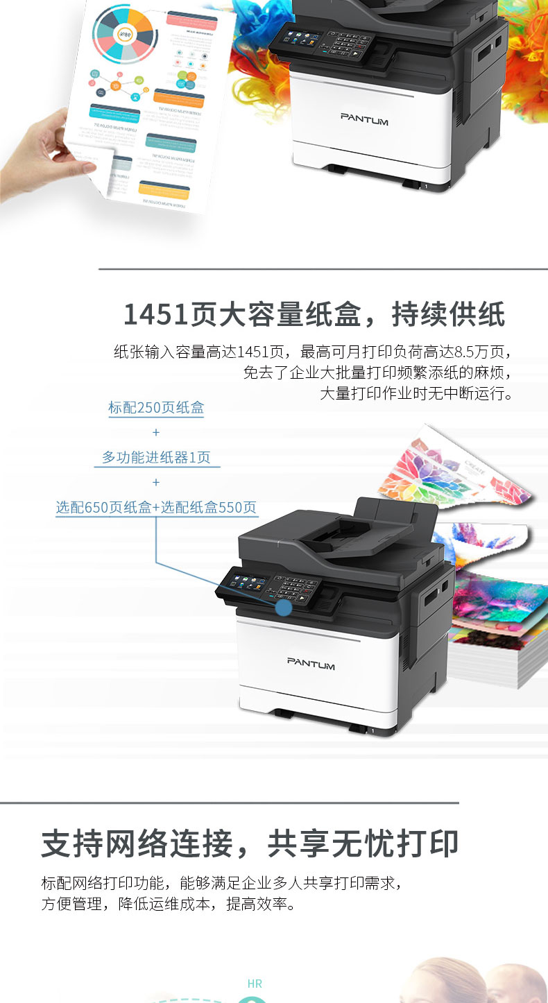 奔图(PANTUM) CM7105DN 彩色激光多功能一体机 (4.3英寸彩色触摸屏 打印 复印 扫描 传真) 自营