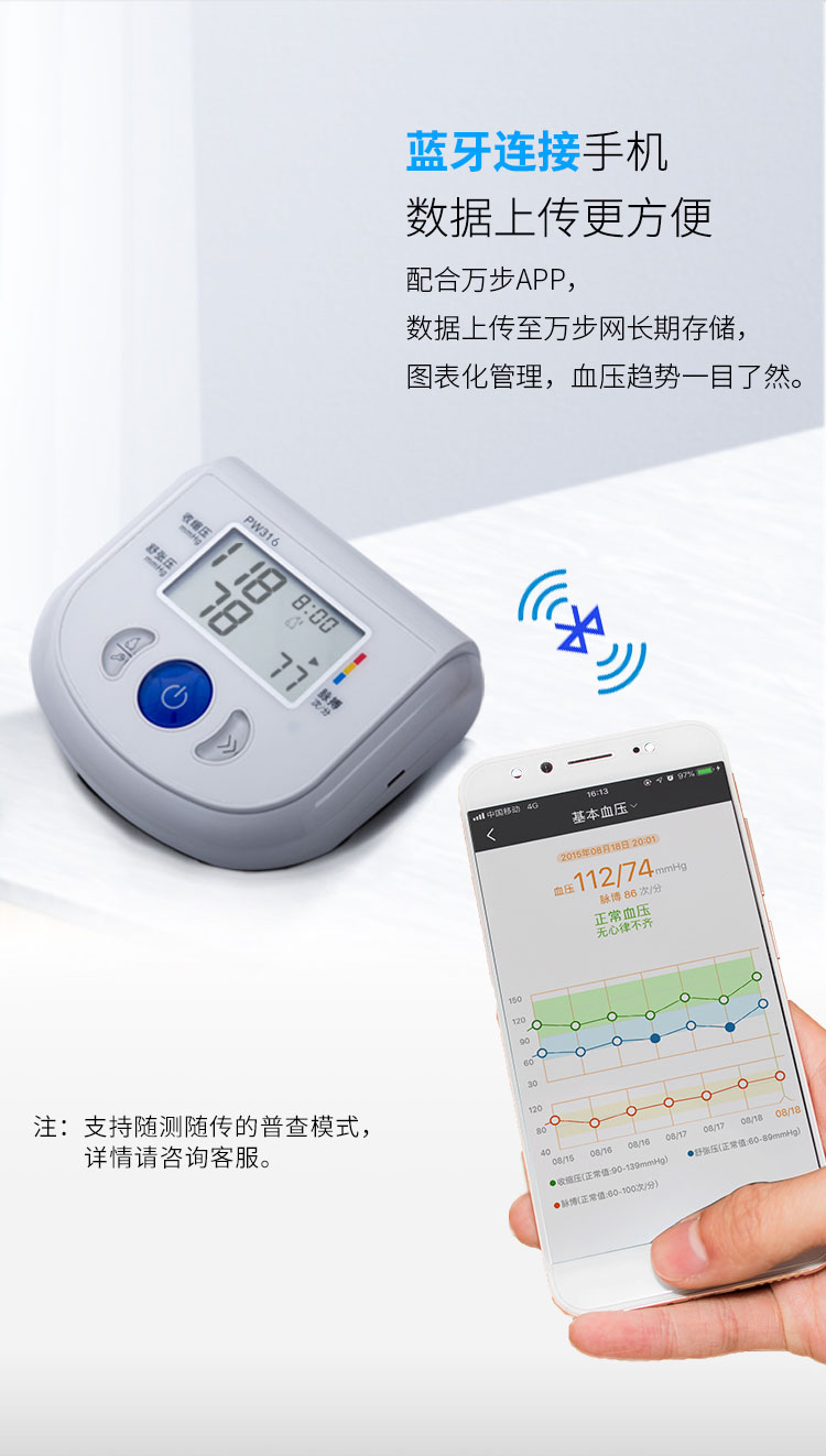 PW316全自动数字蓝牙血压计 自营