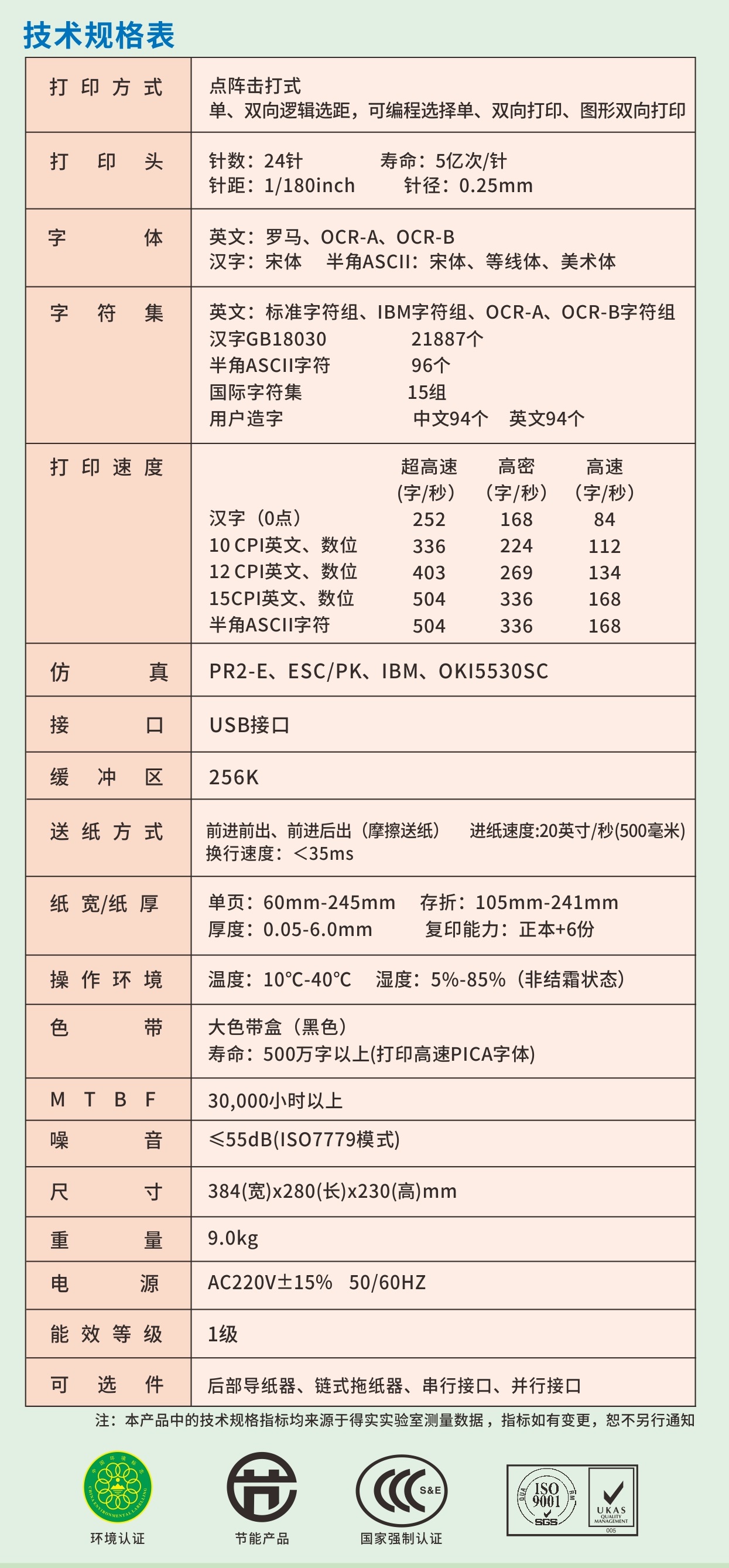 DS-7860外观时尚精美、平均无故障时间长达30000小时,1000万字符大容量色带寿命,配置GB-18030中文大字库。