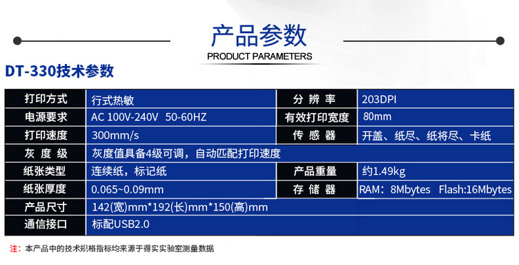 DT-330是得实集团新推出的一款高性能80mm热敏票据打印机。其具有打印速度快、低噪音、操作简易、稳定耐用等特点,秉承外观小巧时尚、维护简单方便的的设计理念,更能满足零售、餐饮、娱乐、医疗、物流等多个行业的打印需求,是用户可靠的打印伙伴!广泛应用于零售、餐饮、娱乐、医疗、物流等领域。