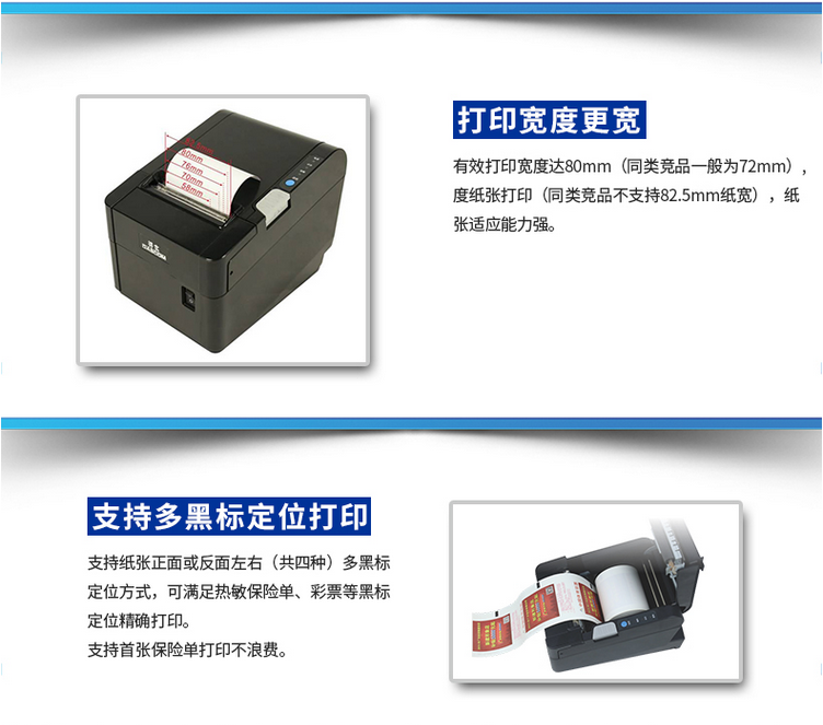 打印头寿命150公里;自动切纸刀寿命200万次;MTBF高达360000小时,足以承受高负荷环境下的稳定运行。